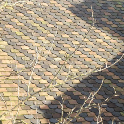 It was now time for our tiling teams to lay the tiles and recreate this roof’s characterful pattern. Slope by slope, the plain and bullnose tiles were carefully loaded onto respective slopes before alternative placement to create the diagonal effect. These vintage tiles did not contain nail holes, we therefore spot bedded the tiles (using cement mortar) to the perimeters and on each fifth course.