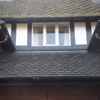 The verge and ridge mortar work followed. As per the request of the local conservation officer, we formed a bespoke pattern within the verge mortar work in order to recreate an ‘alternative’ original detail.