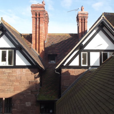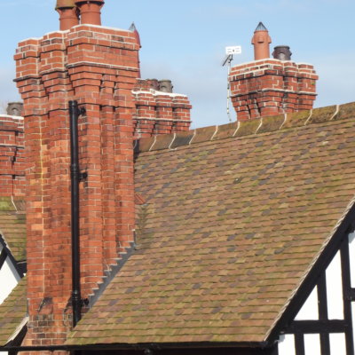 Once battened, our scaffold teams returned to site to extend the scaffold up and around the heads of the chimneys. Our bricklayer proceeded to repoint and reflaunch the heads of the chimneys in suitably gauged mortar. The chimney scaffolds were then safely removed.