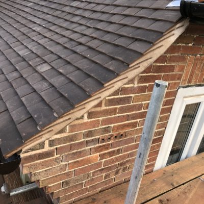 Following the insulating we renewed the fascias, soffits and rainwater goods. This involved carefully stripping the existing fatigued timber/plastic details and replacing them with suitable replacement UPVC. The installation of fascias and soffits was carried out with particular attention to detail, with polytop fixings perfectly inline and at suitable intervals. Over fascia vents were then installed to allow airflow in the roof void. The guttering followed, fixed to correct height and falls, cut carefully to allow for suitable contraction and expansion within the unions.